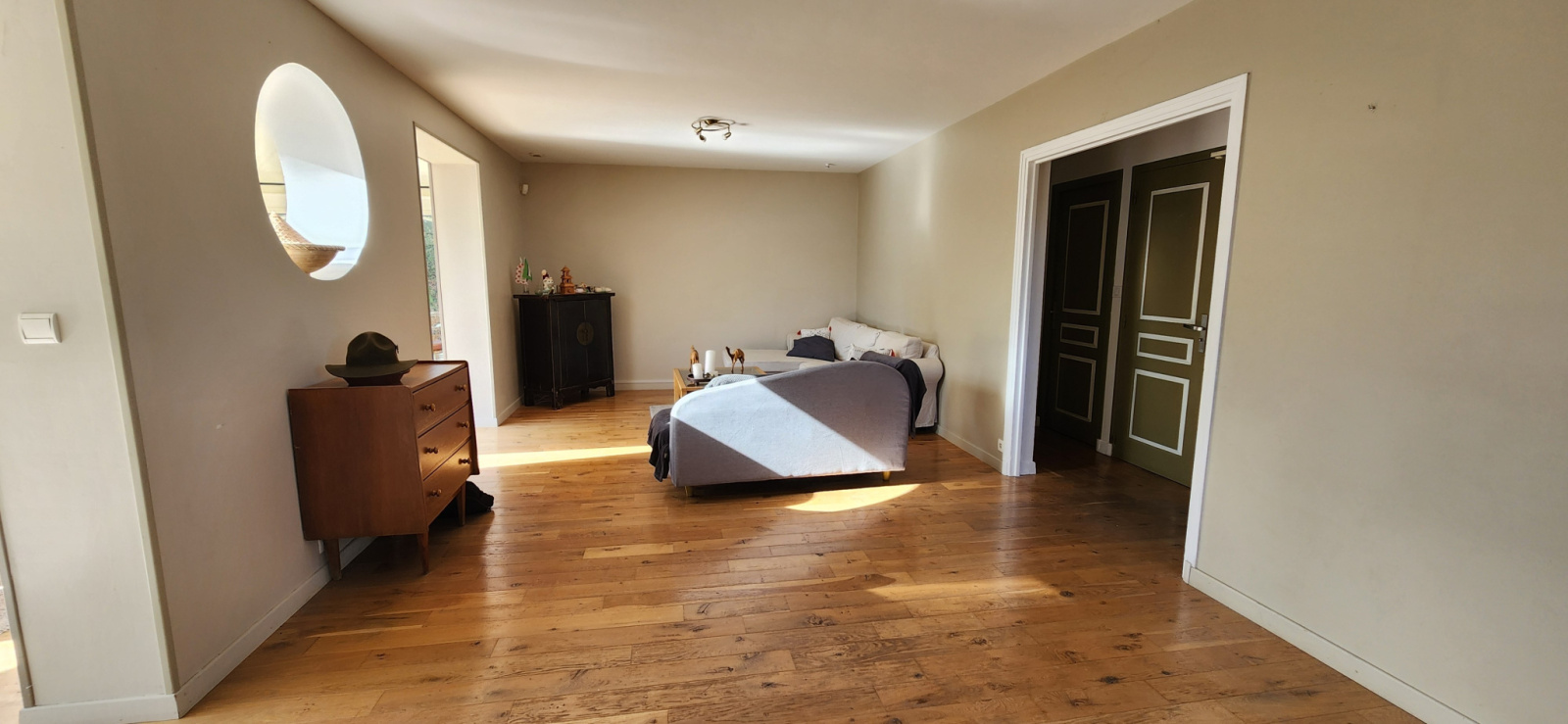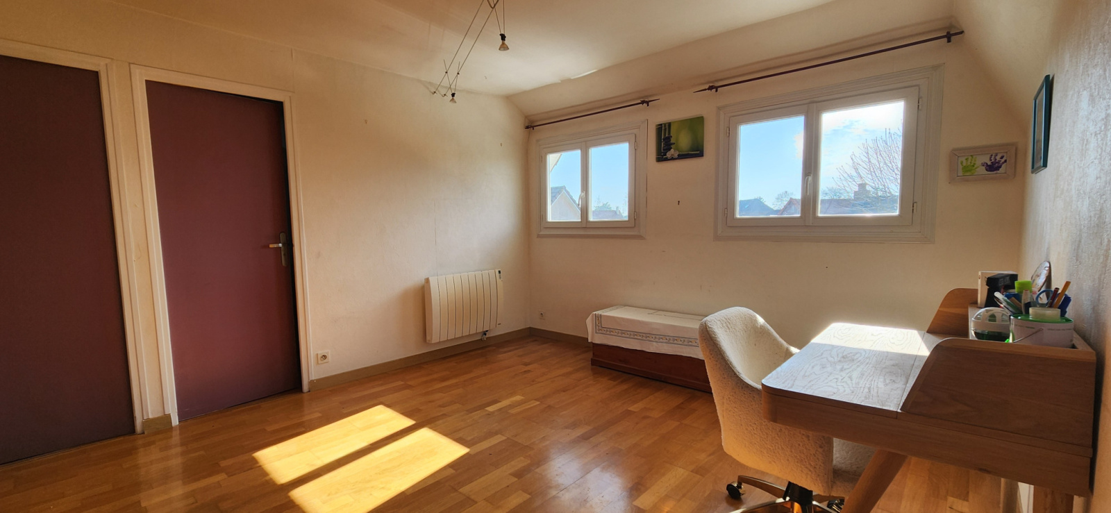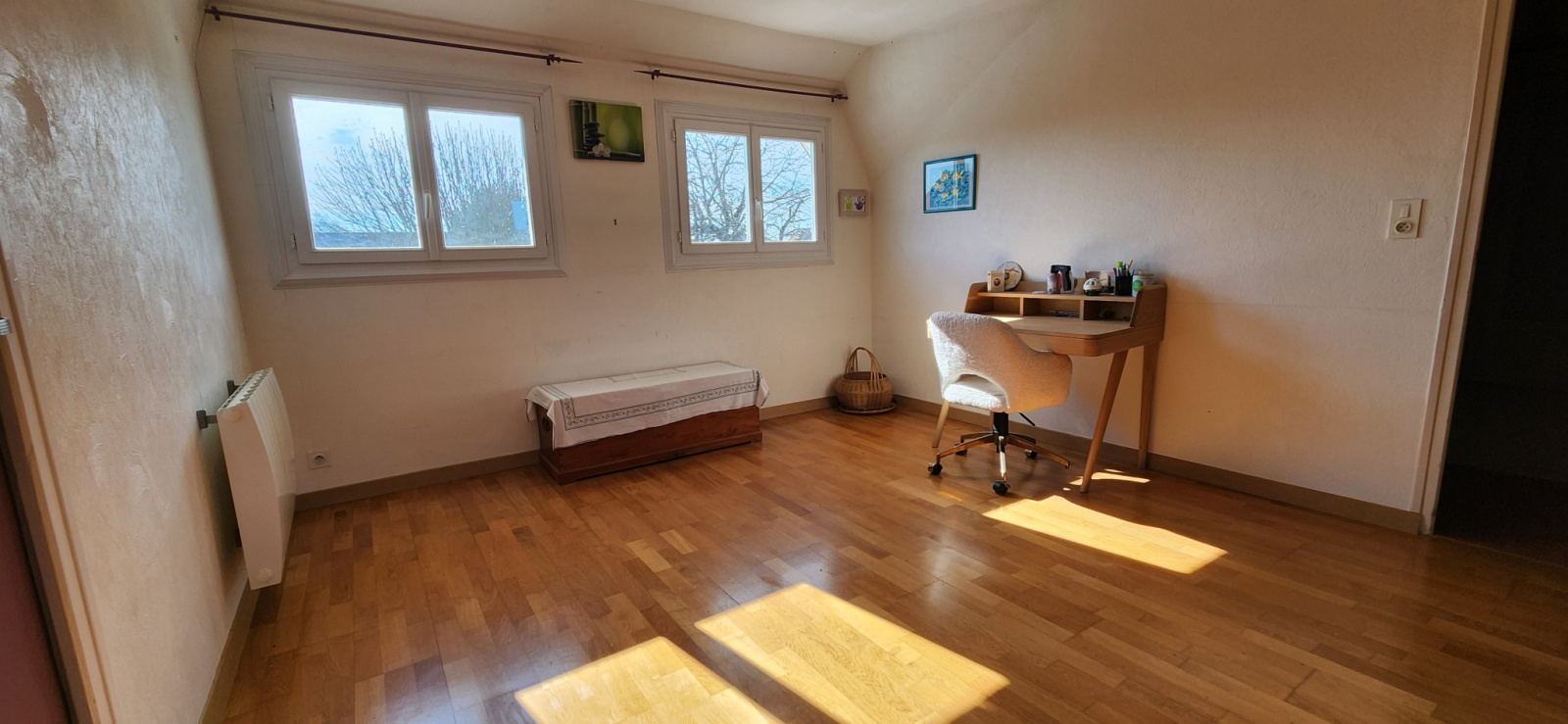 À l'étage, une grande pièce palière, parfaite pour un bureau ou un espace détente dessert 3 chambres ainsi qu’une salle d'eau avec WC.