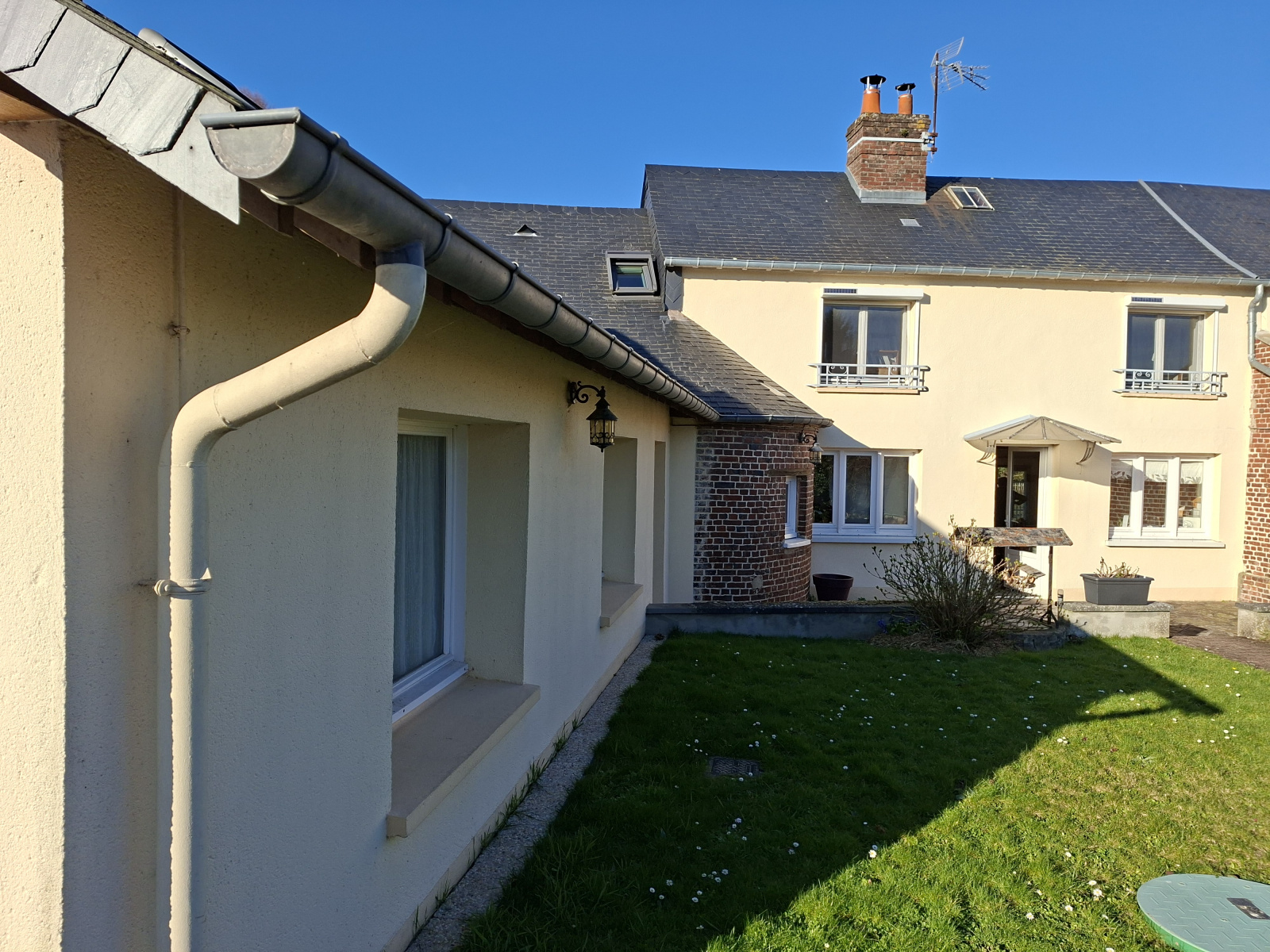 Référence 2460NR. Sur la commune de Lintot les bois dans un bel environnement au calme, à seulement 8 min. de Bacqueville en caux, 20 min. de Dieppe et proche de l'axe autoroute Rouen / Dieppe, joli pavillon mitoyen d'un côté vivable de plain-pied offrant au rez de chaussée : Entrée, cuisine a&e, séjour salon lumineux équipé d'une cheminée bois, pièce de rangement ou pouvant servir de garde-manger, dégagement avec cave, salle d'eau, WC indépendant, 1 belle chambre d'environ 20 m² et un grenier aménagé. A l'étage, vous découvrirez 3 chambres dont 2 en enfilade et une avec placard intégré. Surface habitable d'env. 130 m². Matériaux de qualité : Toiture en ardoise, charpente traditionnelle, Menuiseries en PVC double vitrage, volets électriques sur une partie de la maison, Chauffage : Pompe à chaleur récente et cheminée bois. Internet + fibre. Faible foncier. A l'extérieur : Terrain clos d'une surface de 580 m². avec un bâtiment à rénover. Bien raccordé au tout à l'égout. Belle exposition. Maison spacieuse et fonctionnelle, idéale pour une vie de famille ! A découvrir !!! Cette annonce vous est présentée par l'agence AS immobilier 6 Bis rue Saint Jean 76200 Dieppe. Contactez Nathalie Roult au 06.98.18.54.43 ou 06.05.32.36.88 Secrétariat de l'agence (Agent Commercial RSAC Greffe de Dieppe n° 939 859 781). Réf : 2460NR. Les honoraires de l'agence sont à la charge du vendeur. Les informations sur les risques auquels ce bien est exposé sont disponibles sur le site Géorisques : www.georisques.gouv.fr.